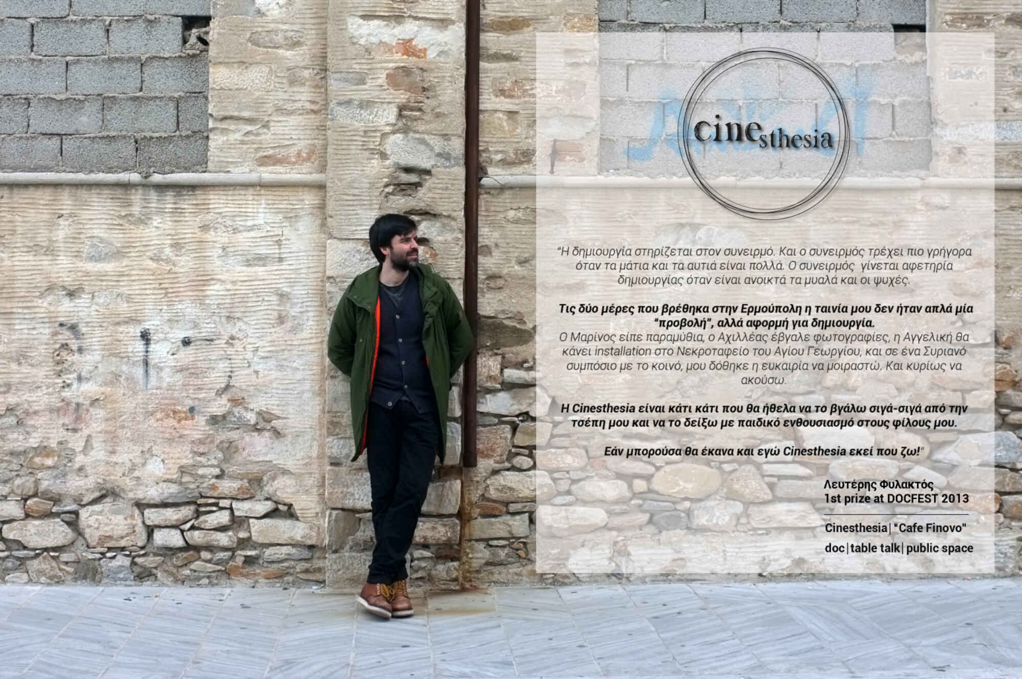 “Those two days at Hermoupolis my film was more than a simple screening but a chance for creation. Marinos told Grimm’s stories, Achilleas took pictures, Aggeliki is making an installation at St.George’s cemetery, and at a symposium with local goods I got the chance to share and to listen.”